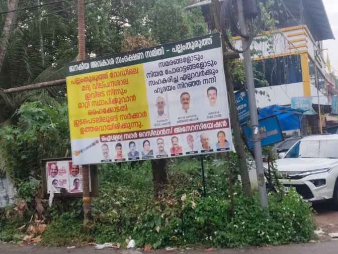ജനവാസ കേന്ദ്രത്തിൽ മദ്യ വിൽപ്പന നടത്തുന്ന ബിവറേജിന്റെ ഔട്ട് ലെറ്റ് മാറ്റി സ്ഥാപിക്കണമെന്ന് കുറച്ചു കാലമായി നാട്ടുകാർ ആവശ്യപ്പെടുന്നു.എന്നാൽ ഒരു നടപടിയും അധികൃതരുടെ ഭാഗത്ത് നിന്നും ഉണ്ടാകാതിരുന്നതിനാൽ നാട്ടുകാർ നിയമ നടപടിയുമായി മുന്നോട്ട് പോയി.ഒടുവിൽ ജനകീയ നിയമ പോരാട്ടങ്ങൾക്ക് അനുകൂലമായ വിധി ഹൈക്കോടതിയിൽ നിന്നും ഉണ്ടായിട്ടും സംസ്ഥാന സർക്കാർ മദ്യ വിൽപ്പന ശാല ജനവാസ കേന്ദ്രത്തിൽ നിന്നും മാറ്റി സ്ഥാപിക്കാൻ ഇതുവരെ തയ്യാറായിട്ടില്ല.കക്ഷി രാഷ്ട്രീയ ഭേദമന്യേ ജനകീയ അവകാശ സംരക്ഷണ സമിതി രൂപീകരിച്ചാണ് നിയമ പോരാട്ടം നടത്തിയത്.നിരവധി റസിഡന്റ്സ് അസോസിയേഷനുകളും പല്ലം തുരുത്ത് റോഡിൽ പ്രാക്ടീസ് നടത്തുന്ന ഡോക്ടർമാരും സ്ഥാപനങ്ങളും ഇന്റർനാഷണൽ സ്കൂളും ഒരു കുടക്കീഴിൽ അണിനിരന്നു ഒന്നിച്ചാണ് ജനവാസ കേന്ദ്രത്തിലെ ഈ സർക്കാർ മദ്യ വിൽപ്പന ശാലക്കെതിരെ പോരാട്ടം നടത്തിയത്.