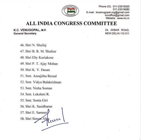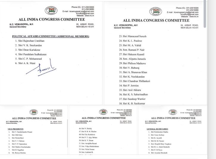 എ ഐ സി സി അംഗങ്ങളായി 45 പേർ കൂടി വന്നു.നിലവിലുള്ള അംഗങ്ങളെ കൂടാതെയാണോ ഇത്.പുതിയ എ ഐ സി സി അംഗങ്ങൾ ഇവരാണ് .