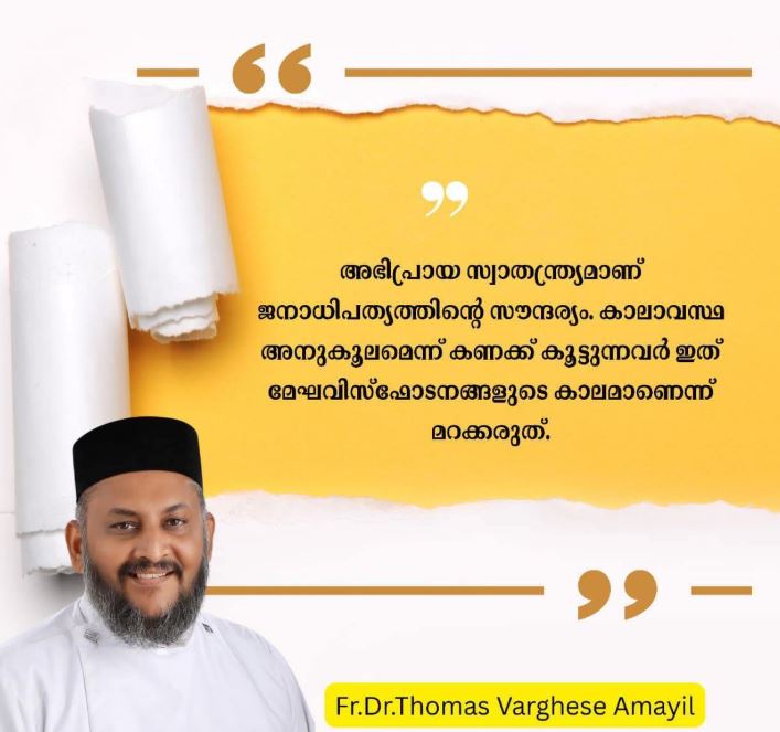 പൊതു സമൂഹത്തിന് ഉൾക്കൊള്ളാൻ കഴിയാത്ത ചില തീരുമാനങ്ങൾ കാണുമ്പോൾ സഭയും, സമൂഹവും തുറന്നു പറയും. ആ അഭിപ്രായ സ്വാതന്ത്ര്യമാണ് ജനാധിപത്യത്തിൻ്റെ സൗന്ദര്യം. കഴിവുള്ള നേതാക്കൻമാർ നേതൃത്വത്തിൽ വരണം എന്നത് പൗരൻമാരുടെ സ്വപ്നമാണ്. അവരെ മതത്തിൻ്റെയും, താൽപ്പര്യങ്ങളുടെയും പേരിൽ തഴയുന്നത് സങ്കടകരമാണ്. ആ അഭിപ്രായത്തിന് ചെവികൊടുക്കാത്തവർ എങ്ങനെ ജനാധിപത്യത്തിൻ്റെ കാവൽക്കാരാകും? ഇനി അതല്ല, മലങ്കര സഭയുടെ പിന്തുണ വേണ്ടെങ്കിൽ അക്കാര്യം നേതൃത്വം തുറന്നു പറയണം. സാമുദായിക സമവാക്യങ്ങളിലൂടെ കസേര കിട്ടിയവരുടെ മറുപടി ഇവിടെ പ്രസക്തവുമല്ല. കാലാവസ്ഥ അനുകൂലമെന്ന് കണക്ക് കൂട്ടുന്നവർ ഇത് മേഘവിസ്ഫോടനങ്ങളുടെ കാലമാണെന്ന് മറക്കരുത്.”