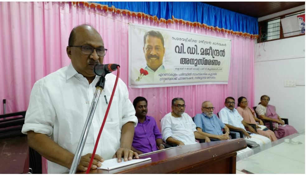 ഏറ്റവും സാധാരണക്കാരായ മനുഷ്യരുടെ പ്രശ്നങ്ങൾക്ക് വേണ്ടി നിരന്തരം ഇടപെടുകയും പരിസ്ഥിതിയുടെ നീതിക്കുവേണ്ടി വാദിക്കുകയും ചെയ്ത മനുഷ്യസ്നേഹിയായിരുന്നു വി ഡി മജീന്ദ്രൻ മജീന്ദ്രൻ എന്ന് പ്രൊഫസർ കെ വി തോമസ് അനുസ്മരിച്ചു.