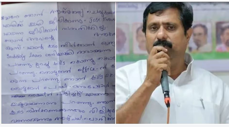 കട ബാധ്യത തീർക്കാൻ വായ്പയ്ക്ക് വേണ്ടി സഹായിക്കണമെന്നാവശ്യപ്പെട്ട് ജോസ് ഫ്രാങ്ക്ലിനെ സമീപിച്ചപ്പോൾ അയാൾ തന്നോട് ലൈംഗികാവശ്യം ഉന്നയിച്ചു. ലോൺ തരാമെന്ന് പറഞ്ഞ് ഓഫീസിൽ വിളിച്ചുവരുത്തി ലൈംഗികമായി ഉപദ്രവിച്ചു.ഒരു തരത്തിലും അയാൾ പറയുന്നതനുസരിക്കാതെ ജീവിക്കാൻ പറ്റില്ലെന്ന ഘട്ടം എത്തിയപ്പോഴാണ് ജീവനൊടുക്കാൻ തീരുമാനിച്ചതെന്നാണ് കത്തിൽ പറയുന്നത്.
