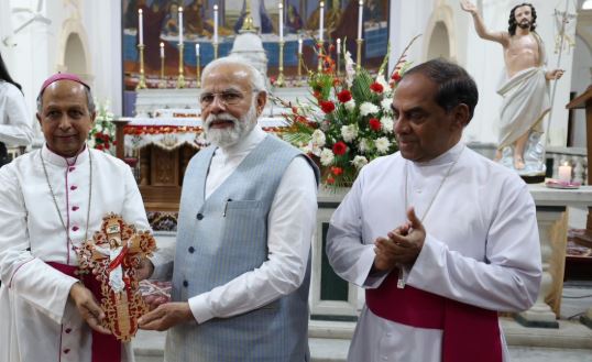 ഡല്ഹി ബിഷപ്പ് റൈറ്റ് റവ. ഡോ. പോള് സ്വരൂപിന്റെ നേതൃത്വത്തില് ആയിരുന്നു ചടങ്ങുകള്. പ്രധാനമന്ത്രിക്ക് വേണ്ടി പ്രത്യേക പ്രാര്ത്ഥനയും ചടങ്ങില് നടന്നു. ബിഷപ്പ് പോള് സ്വരൂപ് മോദിക്ക് വേദ പുസ്തകം സമ്മാനിച്ചു. ഏറ്റുവാങ്ങിയ ബൈബിള് മോദി മുത്തമിട്ടു. സഭാ പ്രതിനിധികളുമായി മോദി കൂടിക്കാഴ്ച്ച നടത്തി. ലോകമെമ്പാടുമുള്ള ജനങ്ങള്ക്ക് സമാധാനത്തിന്റെയും പ്രത്യാശയുടെയും ക്രിസ്മസ് ആശംസിക്കുന്നതായും പ്രധാനമന്ത്രി പ്രതികരിച്ചു. എല്ലാവർക്കും സമാധാനവും, കാരുണ്യവും, പ്രത്യാശയും നിറഞ്ഞ സന്തോഷകരമായ ക്രിസ്മസ് ആശംസിക്കുന്നു. യേശുക്രിസ്തുവിന്റെ ഉപദേശങ്ങൾ നമ്മുടെ സമൂഹത്തിൽ ഐക്യം ശക്തിപ്പെടുത്തട്ടെ. എന്നും മോദി എക്സിൽ കുറിച്ചു.