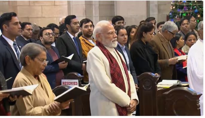 ന്യൂഡൽഹിയിലെ കത്തീഡ്രൽ ചർച്ച് ഓഫ് ദി റിഡംപ്ഷനിൽ ഇന്ന് (വ്യാഴാഴ്ച- 25 ഡിസംബർ 2025 ) നടന്ന ക്രിസ്മസ് ആഘോഷങ്ങളിൽ പ്രധാനമന്ത്രി നരേന്ദ്ര മോദി പങ്കുചേർന്നു. തലസ്ഥാനത്തുനിന്നും വടക്കേ ഇന്ത്യയിൽ നിന്നുമുള്ള ഒരു വലിയ ക്രിസ്ത്യാനി സമൂഹത്തോടൊപ്പം ക്രിസ്മസ് പ്രഭാത ശുശ്രൂഷയിലാണ് പ്രധാനമന്ത്രി പങ്കെടുത്തത് .നൂറുകണക്കിന് വിശ്വാസികള്ക്കൊപ്പമായിരുന്നു പ്രധാനമന്ത്രിയും പ്രാര്ത്ഥനകളില് പങ്കുചേര്ന്നത്. സഭയുടെ ക്രിസ്മസ് ഗാനാലാപനത്തിലും ശുശ്രൂഷകളിലും പ്രധാനമന്ത്രി സന്നിഹിതനായിരുന്നു.