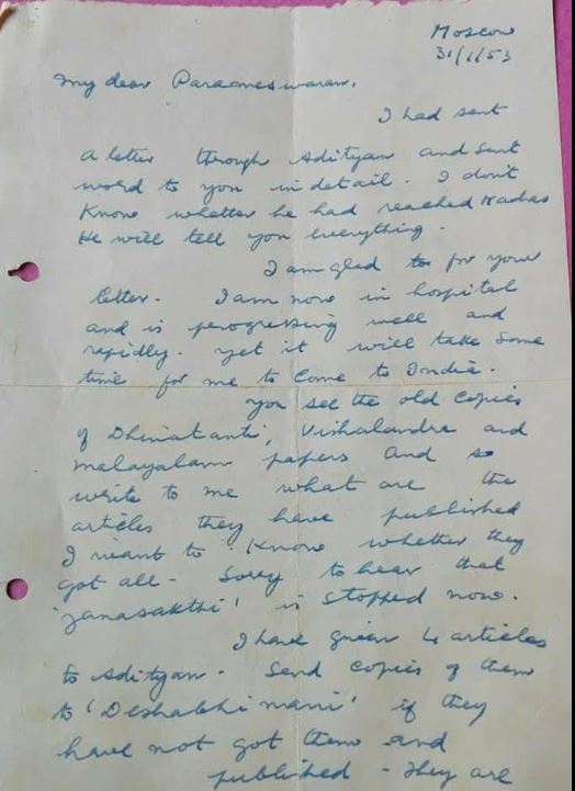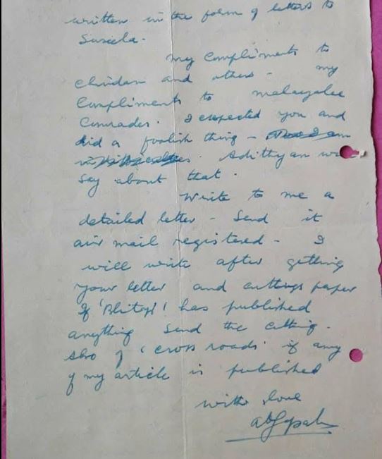 ഏകെജിഎഴുതിയ കത്ത്