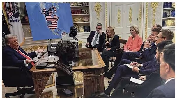 ഇനി മുതൽ കാനഡയും വെനസ്വേലയും ഗ്രീന്ലന്ഡും യുഎസിന്റെ ഭാഗം.ഇക്കാര്യം ചിത്രീകരിക്കുന്ന മാപ്പ് സോഷ്യല് മീഡിയയില് പങ്കുവെച്ച് അമേരിക്കന് പ്രസിഡന്റ് ഡോണള്ഡ് ട്രംപ്. ഫ്രഞ്ച് പ്രസിഡന്റ് ഇമ്മാനുവല് മാക്രോണ്, ഇറ്റാലിയന് പ്രധാനമന്ത്രി ജോര്ജിയ മെലോണി, ബ്രിട്ടീഷ് പ്രധാനമന്ത്രി കെയ്ര് സ്റ്റാര്മര്, യൂറോപ്യന് കമ്മിഷന് അധ്യക്ഷ ഉര്സുല വോണ് ഡെര് ലെയെന് തുടങ്ങിയവര് ഓവല് ഓഫീസില് ഇരിക്കുന്നതായും പശ്ചാത്തലത്തില് മാറ്റങ്ങള് വരുത്തിയ ഭൂപടം നോക്കുന്നതുമാണ് ചിത്രം. ട്രൂത്ത് സോഷ്യല് മീഡിയയിലാണ് ട്രംപ് ചിത്രം പങ്കുവെച്ചത്. ഗ്രീന്ലന്ഡ് സ്വന്തമാക്കുമെന്ന ട്രംപിന്റെ പ്രസ്താവനയ്ക്ക് പിന്നാലെയാണിത്.