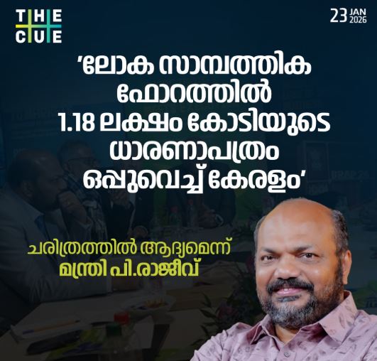 സ്വിറ്റ്സർലണ്ടിലെ ദാവോസിൽ നടന്ന ലോക സാമ്പത്തിക ഫോറത്തിൽ കേരളത്തിൽ നിന്നും വ്യവസായ മന്ത്രി പി രാജീവ് പങ്കെടുക്കുകയും ചില രാജ്യങ്ങളിൽ നിന്നുള്ള കമ്പനികളുമായി നിക്ഷേപ താൽപര്യപത്രം ഒപ്പുവെക്കുകയും ചെയ്തു .ഇത് സംബന്ധിച്ച് രാജീവിന്റെ ഫേസ്ബുക്ക് പോസ്റ്റിന്റെ പൂർണ രൂപം താഴെ: