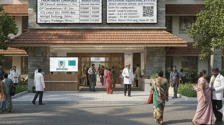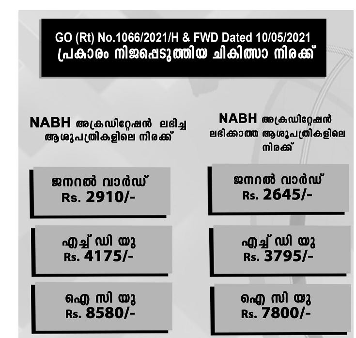 നല്കുന്ന സേവനങ്ങള്ക്കും, ചികിത്സയ്ക്കും ബാധകമായ ഫീസ് നിരക്കുകളും പാക്കേജുകളും, പരാതി പരിഹാര ഓഫീസറുടെ ഇ-മെയില് വിലാസം, പേര്, ഫോണ്നമ്പര്, ജില്ലാ മെഡിക്കല് ഓഫീസര്, ജില്ലാ രജിസ്റ്ററിംഗ് അതോറിറ്റി എന്നിവരെ ബന്ധപ്പെടുവാനുള്ള സംവിധാനം, ഫോണ്നമ്പറുകള് തുടങ്ങി രോഗികളുടെ അവകാശങ്ങളും ലഭ്യമായ സൗകര്യങ്ങളുടെ വിവരങ്ങളും മലയാളത്തിലും ഇംഗ്ലീഷിലും അഡ്മിഷന് ഡസ്കില്/റിസപ്ഷന് സ്ഥലത്ത് പ്രദര്ശിപ്പിക്കുകയും സ്ഥാപനത്തിന്റെ ഔദ്യോഗിക വെബ്സൈറ്റില് പ്രസിദ്ധീകരിക്കേണ്ടതുമാണെന്ന് ആരോഗ്യവകുപ്പ് അഡിഷണല് ചീഫ് സെക്രട്ടറി ഡോ രാജന് ഖോബ്രഗഡെ അറിയിച്ചു.